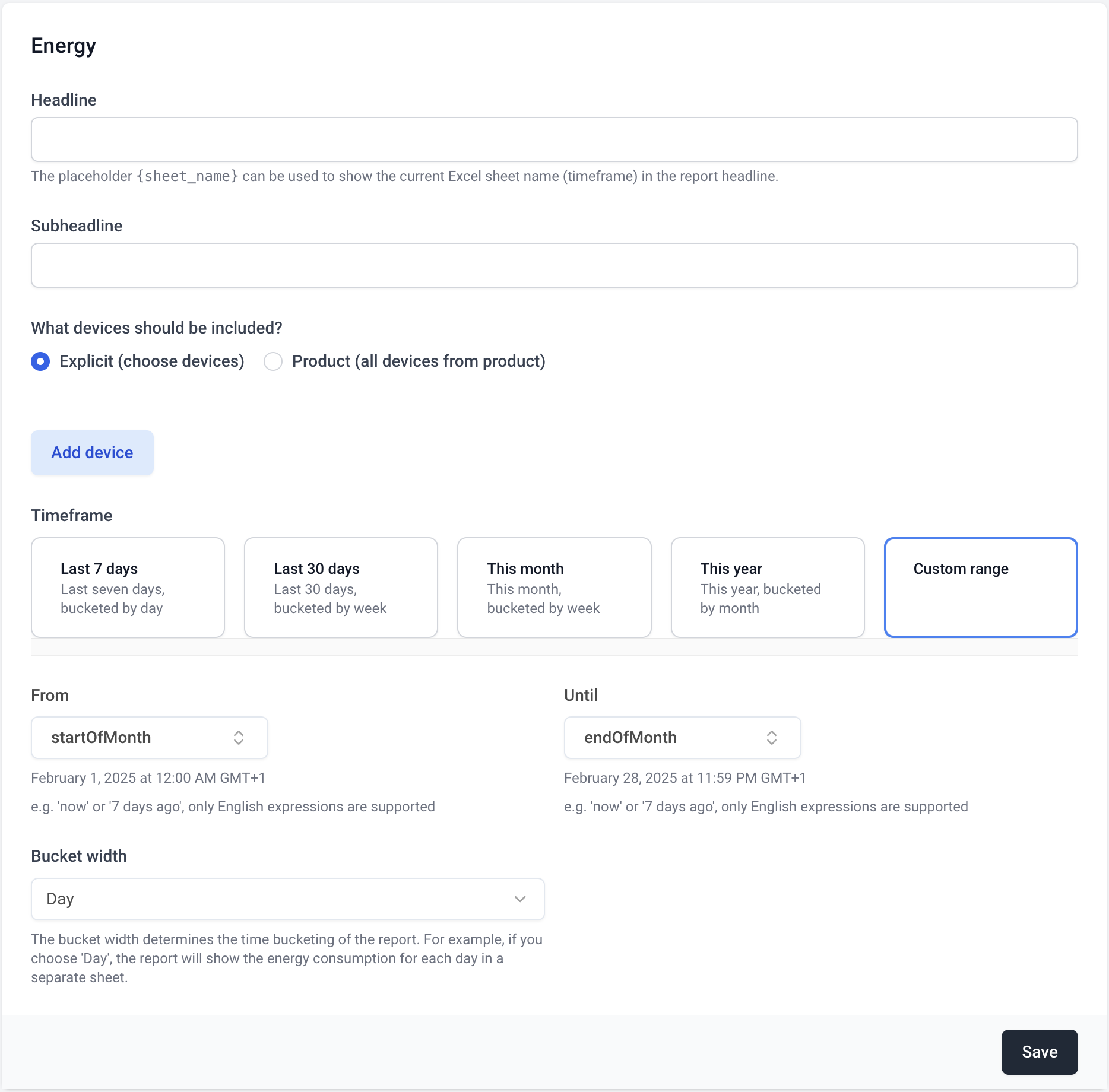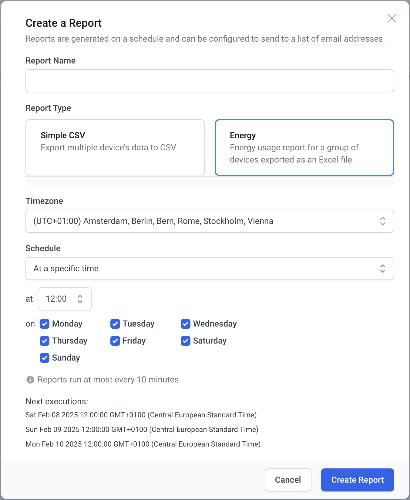 Energy Reports in Datacake enable automated, scheduled reporting of device consumption data. Reports are delivered via email and provide detailed energy consumption analysis across different time peri